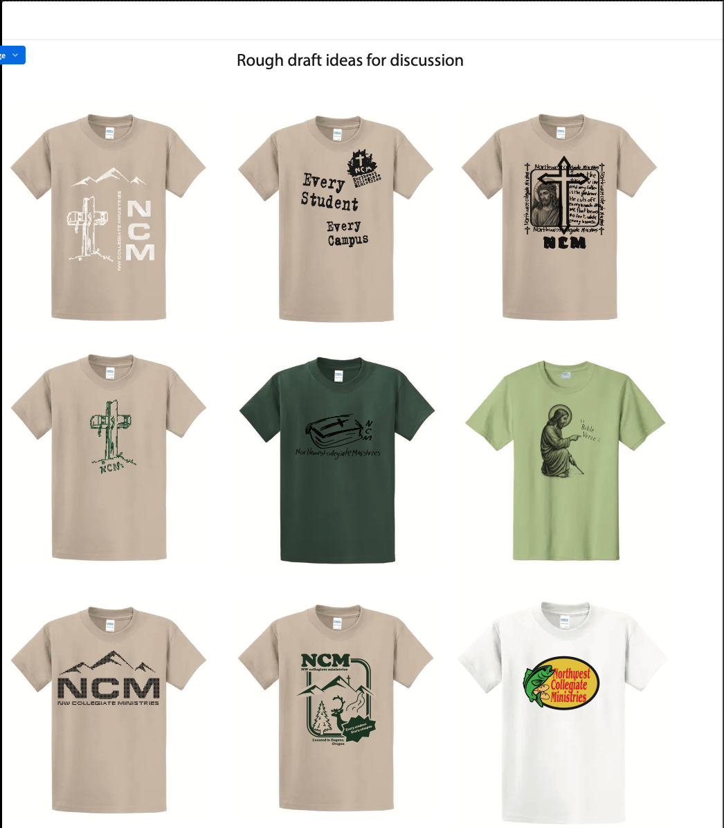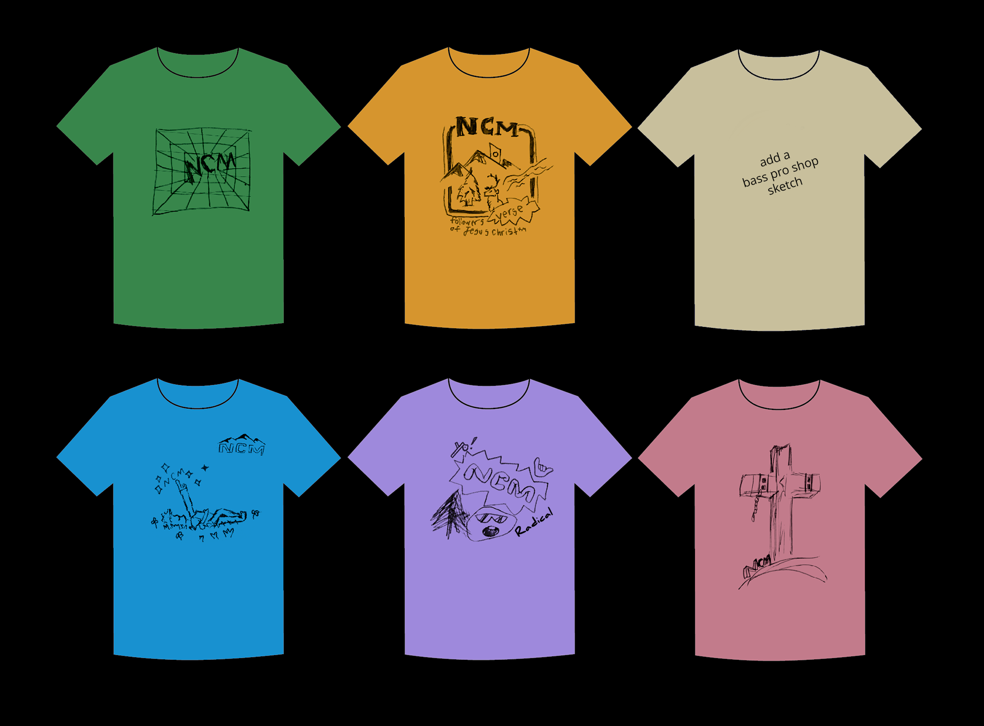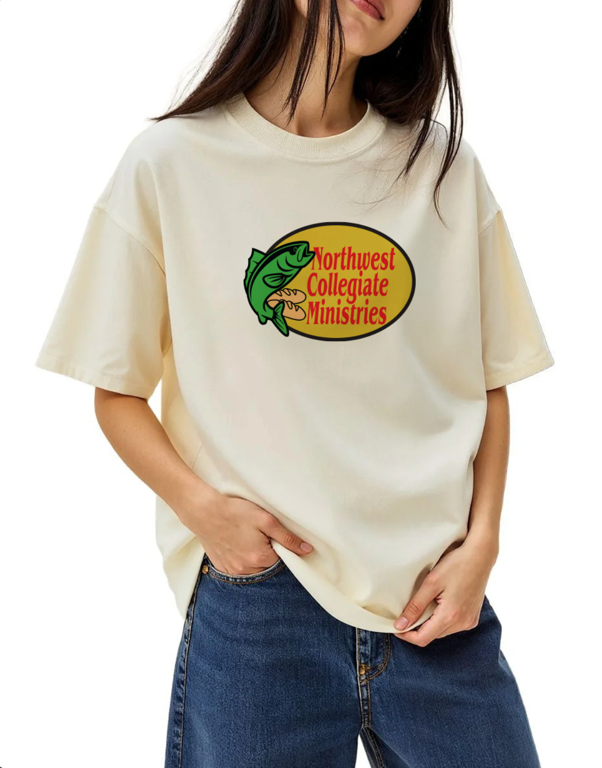 I designed shirts for a campus ministry. We went through a few iterations of what could be since they didn't adhere to a single logo. In the end, their favorite turned out to be the Bass Pro Shops spoof!